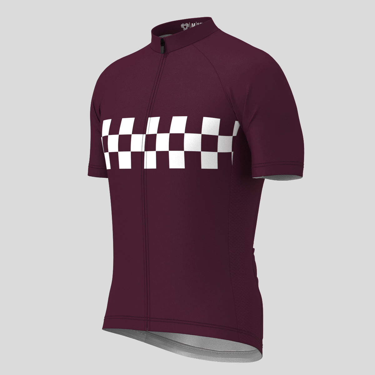 Men's Checkered Flag Retro Cycling Jersey - Burgundy