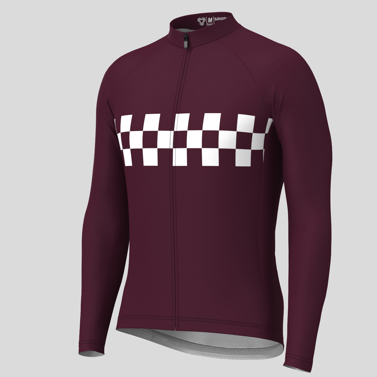 Men's Checkered Flag Retro LS Cycling Jersey - Burgundy
