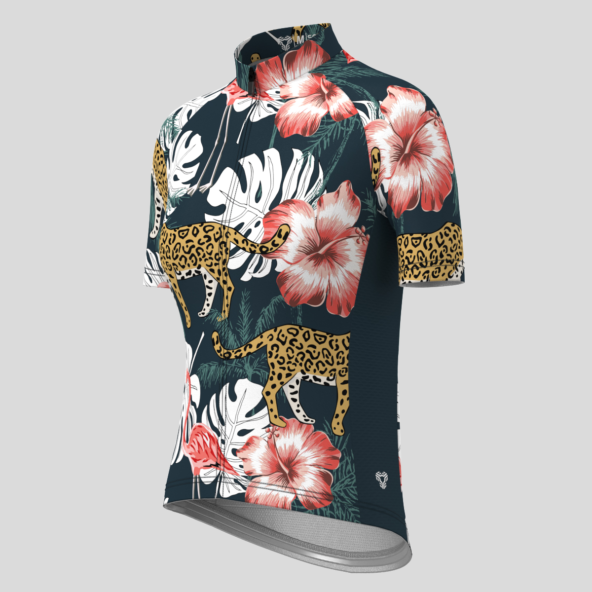 Tiger Leopard Tropical Plants Print Men's Cycling Jersey