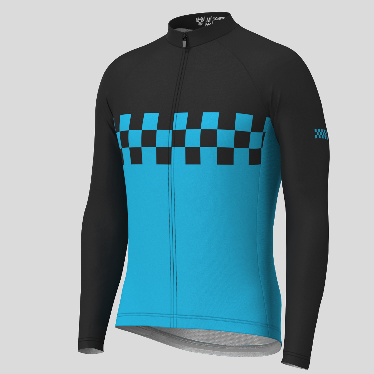 Men's Checkered Flag LS Cycling Jersey - Blue
