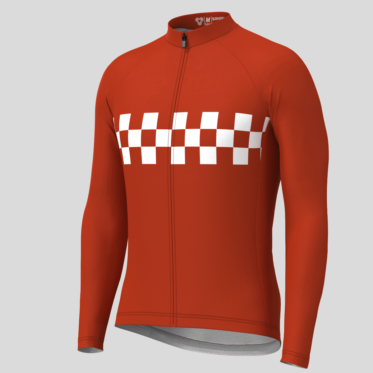 Men's Checkered Flag Retro LS Cycling Jersey - Brick
