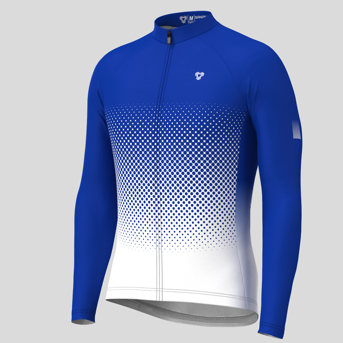 Polka Dot Gradient Men's LS Cycling Jersey - Racing Blue