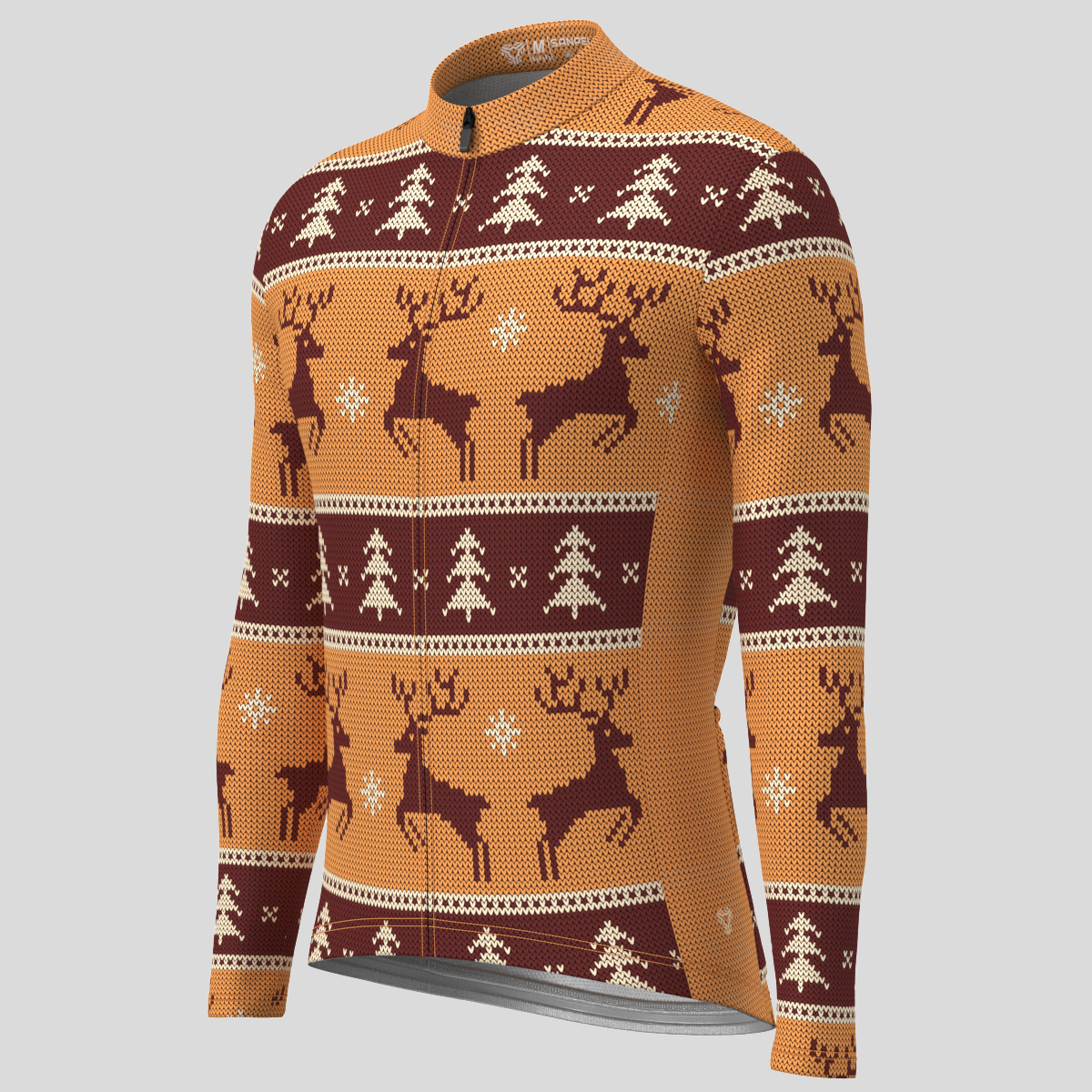 XMAS Ugly Sweater Themed Men's LS Cycling Jersey - Brown