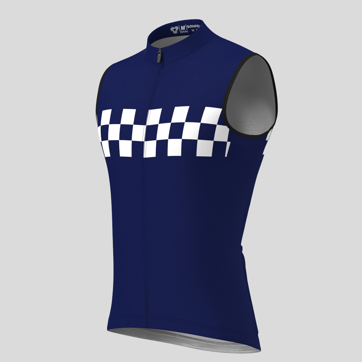 Men's Checkered Flag Retro Sleeveless Cycling Jersey - Ink