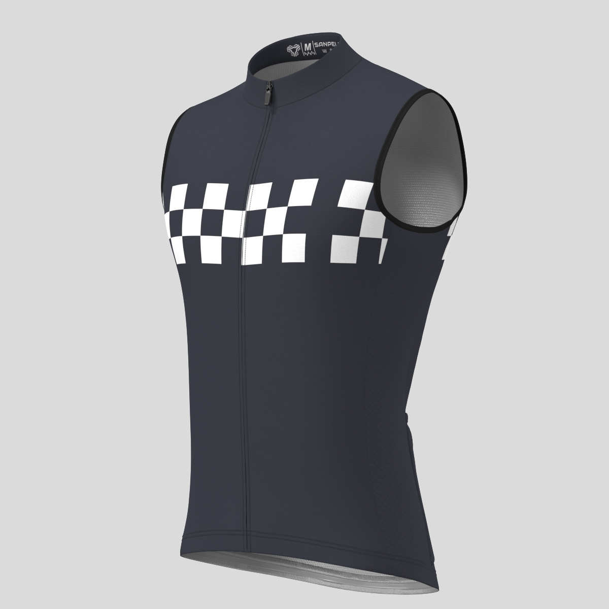 Men's Checkered Flag Retro Sleeveless Cycling Jersey - Graphite