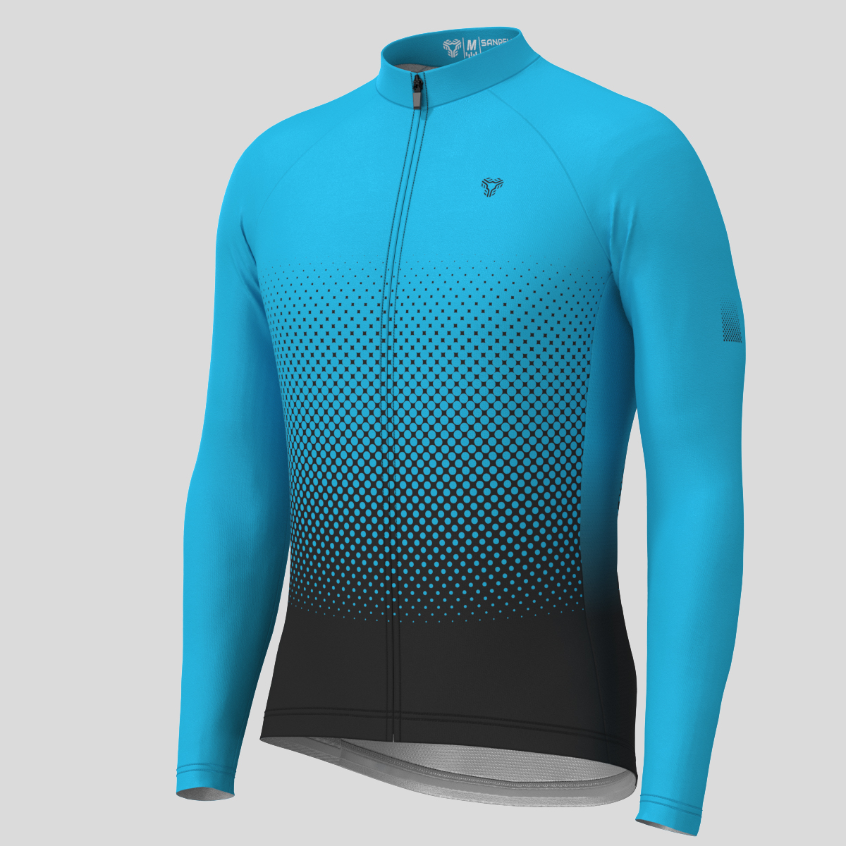 Polka Dot Gradient Men's LS Cycling Jersey - Blue