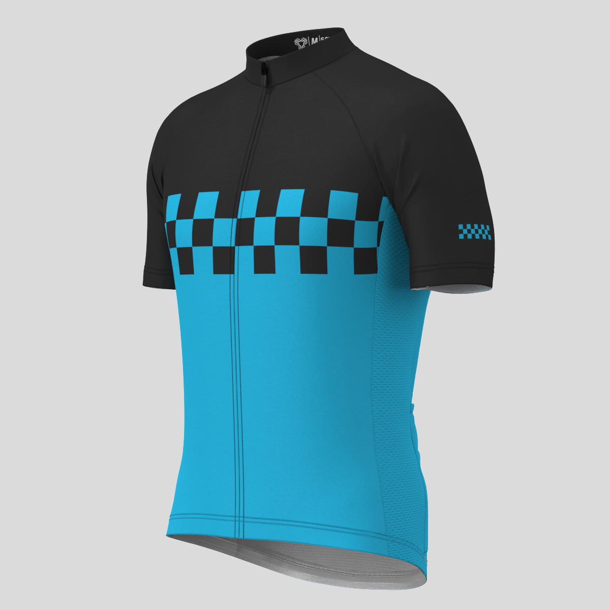 Men's Checkered Flag Retro LS Cycling Jersey - Racing Blue